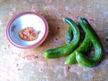 曲がったキュウリは小さいうちに取ります。 売れるものでもないし、と畑に返してきました。 ある日、町内の喫茶店(ランチも出す)のママさんから、 「こういうのが欲しいのよね。あったら持ってきて。」 どんな味なんだろう?と試し […]
