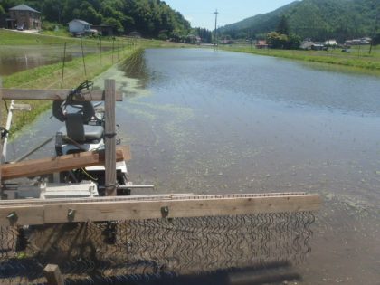 5月19日の田植えから3日目、予定通り1回目のビニペット除草機の作業をしました。 (ビニペット除草機の製作記はこちら。) びよんびよんとした針金(ビニペット)で田んぼのトロトロ層を引っ掻いて、発芽したての雑草を浮かせてし […]