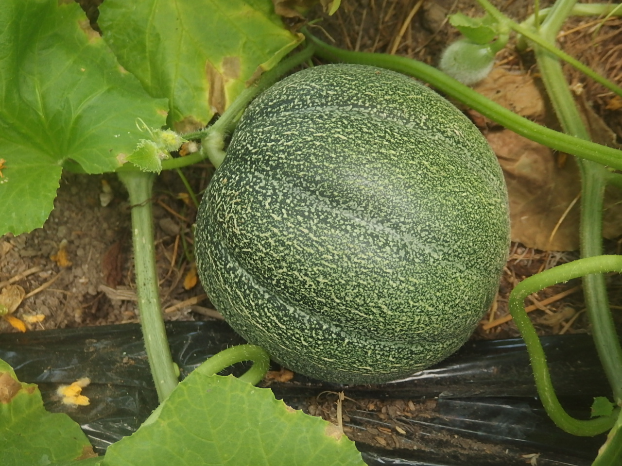 ビニールハウスの中でこっそり栽培している「メロン」。